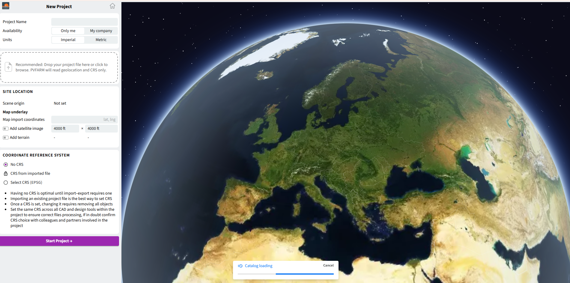 - Global map preview to confirm project location.